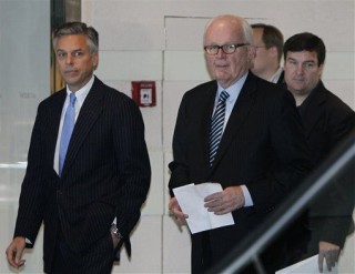 Obama's Ambassador Eyes 2012 Run Against Him Jon Huntsman's DC home purchase may signal potential White House run By Mark Russell, Newser Staff Posted Jan 2, 2011 10:24 AM CST 2 comments Comments U.S. special envoy for North Korea Stephen Bosworth, right, is followed by U.S. Ambassador to China Jon Huntsman, left, as Bosworth prepares to read a statement to reporters before leaving a hotel in... (AP Photo/Andy Wong) View 1 more image (Newser) – Who's the moderate conservative, Mormon ex-governor making ripples in the 2012 presidential pool? Not Mitt Romney—meet Jon Huntsman, the former governor of Utah who President Obama appointed ambassador to China in 2009. The move, seen as an effort to neutralize the only potential rival who made Team Obama "a wee bit queasy," has done anything but: Huntsman recently bought a $3.6 million home in Washington, DC, and isn't shy about signaling he's giving 2012 a long look, reports Newsweek. Huntsman won't confirm that he's taking on his boss, but he does say, "But we won’t do this forever, and I think we may have one final run left in our bones.” The billionaire businessman's son doesn't even register on GOP pollsters' radar, and would certainly face stiff competition from Romney in terms of support and campaign cash, but that could change quickly: "We’re a fire squad," says one former supporter, "if he says the word, we can get things going fast.” View 1 more image Report a story error My Take on This Story Show results without voting | 20% Annoying 7% Hilarious 51% Intriguing 1% Depressing 7% Brilliant 13% Scary