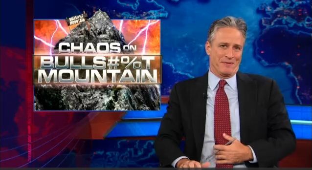 Jon Stewart did what he does best on last night's Daily Show: Made fun of Fox News, or as he calls it, "Romney Campaign Headquarters." In a segment hilariously titled "Chaos on Bullshit Mountain," Stewart ran through the network's oft-contradictory attempts to spin Romney's 47% gaffe, showing hosts alternately deriding Mother Jones as an unreliable source, dismissing the comment as a minor gaffe and distraction, and outright embracing Romney's sentiment. Stewart's summary: "This inartfully stated dirty liberal smear is a truthful expression of Mitt Romney's political philosophy, and it is a winner."
