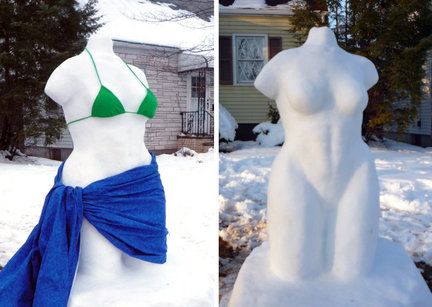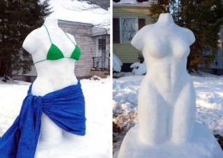 NJ Family Ordered to Cover Snow Babe 'We were trying for Venus de Milo,' says mom By Mary Papenfuss, Newser Staff Posted Mar 4, 2010 4:03 AM CST Updated Mar 4, 2010 6:00 AM CST 23 comments Comments After and beforeshots of of the "bodacious" snowlady New Jersey neighbors objected to. (Courtesy of the Gonzalez family.) (Newser) – A Jersey family was trying for a classy snow sculpture evocative of the delicious Venus de Milo, but got a frosty reception from neighbors who viewed the hot snow lady as an x-rated vulgarity. A cop, who admired the frosty queen, ordered the family to cover her up and she quickly sported a bikini top and sash skirt, reports the Newark Star Ledger. OK, so the snow babe was "curvaceous, bodacious and booty-licious"—but not obscene, said Elisa Gonzalez. "I thought she looked more objectified and sexualized with the bikini," added the miffed mom.
