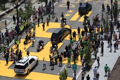 House Speaker Nancy Pelosi led a delegation Monday to Joint Base Andrews in Maryland to greet Lewis’s flag-draped casket. Lewis's motorcade stopped at Black Lives Matter Plaza near the White House as it wound through Washington before arriving at the Capitol, where the late congressman becomes the first Black lawmaker to lie in state in the Rotunda. As with others afforded the honor, Lewis's casket was rested atop the catafalque built for President Abraham Lincoln's funeral in 1865.