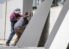 WICHITA, Kan. (AP) — Fast-moving storms with strong winds, large hail and apparent tornadoes swept Oklahoma and Kansas, blowing roofs off homes and blocking roads with toppled trees and downed power lines. Meanwhile, Houston made progress in recovering from last week's deadly storms.