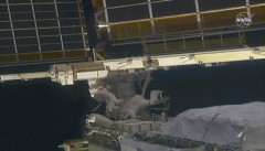 While awaiting darkness, the camera-and-light assembly on Kimbrough's helmet came loose, even though he'd switched to a different suit to avoid the trouble he encountered last time. Pesquet did his best to secure it with wire ties, as the minutes ticked by. His effort paid off, and the final step — the actual unfurling — went off without a hitch.