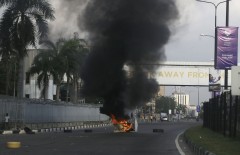Police also fired tear gas at bands of demonstrators and smoke was seen billowing from several areas in the city’s center. Two private TV stations were forced off the air at least temporarily when their offices were burned by unidentified attackers.