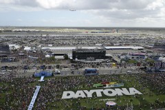 Trump made a dramatic entrance hours earlier, setting off a raucous celebration at the famed track. Thousands cheered as Air Force One performed a flyover and landed at Daytona International Airport a few hundred yards behind the track. Trump's motorcade arrived a few minutes later, prompting another loud ovation. Both entrances were broadcast on giant video boards around the superspeedway.