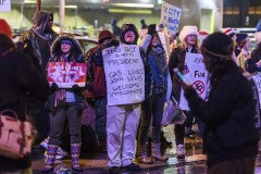 A few dozen protesters gathered near the stadium before the game, shouting anti-Trump slogans. But more fans seemed upset by the long lines to get into the event amid increased security.