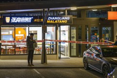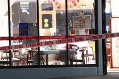 Surveillance footage posted by news website Stuff showed people fleeing from one of the restaurants, including one person who ran out backward holding a chair as a barricade followed closely by another person holding a weapon.