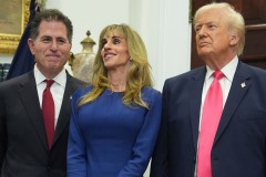 Michael Dell, left, his wife Susan and President Donald Trump listen during an event on "Trump Accounts" for kids in the Roosevelt Room of the White House, Tuesday, Dec. 2, 2025, in Washington. (AP Photo/Evan Vucci)   (Associated Press)
