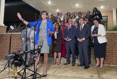 Speaking in the airport parking lot, he blasted the governor for likening the group, which includes many Black and Latino lawmakers, to “animal or property, to say he will corral us and he will cabin us in the capitol to get this agenda.” After addressing the media, Black lawmakers led the group in singing ”We Shall Overcome."