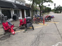 Her 5-year-old son was riding his bike decorated with red and blue curled ribbons. He and other children in the group held small American flags. The city said on it’s website that the festivities were to include a children’s bike and pet parade.