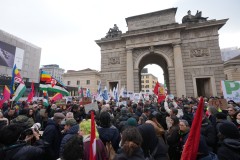 The protest in Piazza XXV Aprile, a square named for the date of Italy’s liberation from Nazi fascism in 1945, drew people from the left-leaning Democratic Party, the CGIL trade union confederation and the ANPI organizations that protect the memory of Italy’s partisan resistance during World War II, along with many other people.