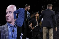 Bezos was explaining plans to send satellites into space when the woman appeared on stage.
