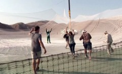 "This thing just happened! I can't even get the words out of my mouth," he added as he thanked the dozens of crew members who spent two years helping him prepare for the jump, including those who assembled the fishing trawler-like net and made sure it really worked.