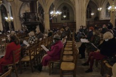 The choir members stood socially distanced to be able to take off their masks — which is required indoors in France to stem the spread of the virus — and sing.