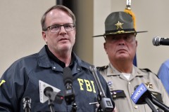 Kentucky State Police Major Eric Walker gives an update at the London Community Center in London, Ky., Sunday, Sept. 8, 2024, on the efforts to find the suspect in the Saturday shooting at Interstate 75 near Livingston, Ky. (AP Photo/Timothy D. Easley)   (Associated Press)