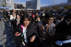 About an hour after the end of the concert, AP journalists were near Haneda’s private jet area when minivans drove up and someone went inside the gate area, as four to five people carrying large black umbrellas obstructed the view of the person.