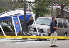 Images of the scene showed a van smashed against a mangled bus shelter. Shattered glass covered the sidewalk.