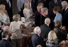 The bipartisan crowd of lawmakers and other dignitaries gave Clinton a standing ovation after Trump asked her to rise.
