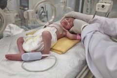 “We can say there is some progress in her health condition, but the situation is still at risk,” said Dr. Mohammad Salameh, head of the unit. “This child should have been in the mother’s womb at this time, but she was deprived of this right.”