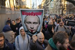 Hundreds gathered in the Georgian capital of Tbilisi, which has also seen a huge influx of Russians since the invasion of Ukraine. Some held banners saying “Putin is the killer” and “We will not forgive.” Up to 300 people attended a similar rally in Georgia’s third-largest city, Batumi.