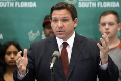DeSantis, a fierce opponent of virus mask and vaccine mandates, approached the students and asked them to remove their masks as they awaited the Republican governor at the news conference at the University of South Florida in Tampa.