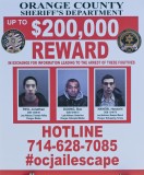 SANTA ANA, Calif. (AP) — Authorities say a teacher has been arrested on suspicion of helping three inmates — including an alleged killer — escape from a maximum-security jail in Southern California. They believe the men may be living in a stolen van.