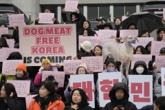 Dozens of animal rights activists gathered at the National Assembly to celebrate the bill's passage. They carried large photos of dogs, chanted slogans and held placards reading “Dog meat-free Korea is coming.”
