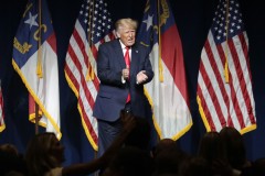 Invited to the stage briefly during his remarks, Trump daughter-in-law and North Carolina native Lara Trump announced she would not run for the Senate because of family obligations.