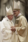 Francis presided over the ceremony in St. Peter's Basilica, elevating churchmen who share his pastoral concerns at a time when his pontificate is under fire from conservatives within the College of Cardinals itself.