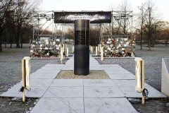 The Center for Political Beauty, a Germany-based activist group known for provocative stunts, installed an urn outside the Reichtstag building on Monday, saying it contained victims’ remains that it had unearthed from 23 locations near Nazi death and concentration camps in Germany, Poland and Ukraine. Soil the group said contained the remains could be seen in the transparent orange urn, about the size of an oil drum, set atop a metal pillar.