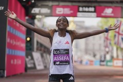 LONDON (AP) — Tigst Assefa of Ethiopia took advantage of the warm weather to pull away late for her first London Marathon title on Sunday, setting a record time for a women's-only race in the process.