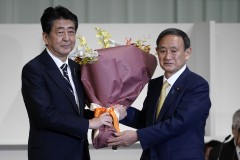 Suga repeatedly has praised Abe’s diplomacy and economic policies when asked about what he would like to accomplish as prime minister. He also has defended scores of favoritism and cronyism scandals, saying that investigations into the cases were properly handled.