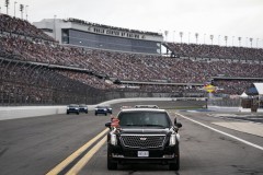 His motorcade arrived at the speedway by driving onto a portion of the track. Trump's limousine later led drivers on two ceremonial laps and he went on the radio to urge them to have fun and be safe.