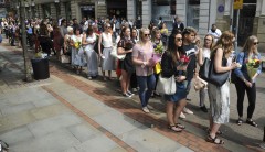Fifteen-year-old Millie Robson, wearing one of Grande's T-shirts, told the queen she had won VIP tickets to the pop star's concert. She recalled leaving the concert when the blast struck and remembered an intense ringing in her ears, but not being entirely aware that she was bleeding badly from her legs.