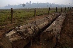 At dawn, the blazing sun was hidden under thick smoke that blanketed the horizon like fog. Trucks carrying fresh timber sped through a road that cut through lands where heaps of ash were piled around charred logs.