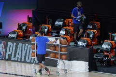 Magic player and referees were on the floor for the game but Milwaukee never took the floor. Eventually everyone else left and the arena staff soon took the balls, towels and tags that go on player chairs back inside.