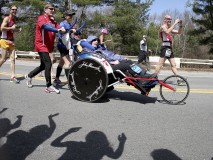 Dick Hoyt first pushed his son, who is quadriplegic and has cerebral palsy, in the Boston Marathon in 1980. Dick and Rick, in a specialized wheelchair, completed 32 Boston Marathons together, until Dick, citing health issues, retired in 2014. He had planned on retiring after the 2013 race, but the father and son never finished because of that year's finish line bombing, so they came back one more time.