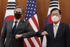 When Blinken met South Korean Foreign Minister Chung Eui-yong on Wednesday, he said the United States will work with South Korea, Japan and other allies to achieve the denuclearization of North Korea. According to the State Department, Blinken and Chung also reaffirmed a shared commitment to address North Korean nuclear and ballistic missile issues that they said are “a priority for the alliance.”