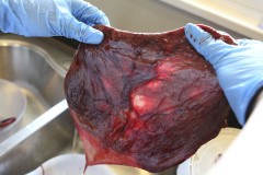 The placenta grows in the uterus during pregnancy and provides oxygen and nutrients to the fetus. Most mammal mothers eat placentas after giving birth — camels and humans traditionally were the exceptions.