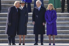 Trump, speaking in Emancipation Hall after the swearing-in ceremony, joked about his wife’s hat nearly blowing away. The first lady had held onto her hat as a military helicopter taking off with Biden generated wind.