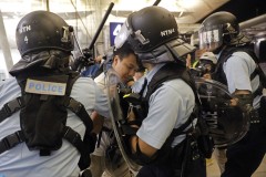 Assistant Commissioner of Police Operations Mak Chin-ho said the men, aged between 17 and 28, were arrested for illegal assembly. Two were also charged with assaulting a police officer and possessing offensive weapons as riot police sought to clear the terminal.