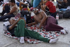 The migrants stretched out under a covered athletic court and under trees at a park in Alvaro Obregon. There was no sign at the start of any police attempt to block them.