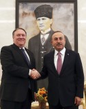 The three posed for photos before their meetings, but said nothing in front of journalists. Pompeo held separate meetings with Erdogan and Cavusoglu, each lasting around 40 minutes.