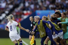 The Americans were criticized after their record-breaking 13-0 rout of Thailand when players celebrated goals even after the victory was well in hand. They were noticeably more muted in this one, and all three goals were in the first half.