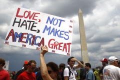 But Daniela Guray, a 19-year-old from Chicago who held a "Dump Trump" sign, said she was subjected to a racial epithet while walking along the Constitution Avenue parade route and told to go home.