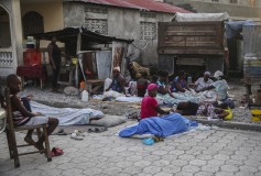 In the badly damaged coastal town of Les Cayes, some families salvaged their few belongings and spent the night at an open-air football pitch. On Sunday morning, people lined up to buy what little was available: bananas, avocados and water at a local street market.