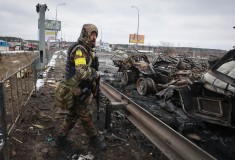 Ukrainians have used whatever they had to try to stop the Russian advance. On a highway between Odesa and Mykolaiv in southern Ukraine, residents piled tractor tires filled with sand and topped with sandbags to block convoys.