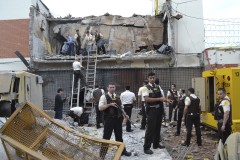 Video footage showed burned armored cars outside the crumbling remains of the company's building.