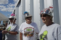 The gathering occurred about 95 miles (153 kilometers) from the events taking place near the tiny Nevada towns of Rachel and Hiko after an internet hoax posted in June invited people to "storm" the once-secret military installation, the focus of popular lore about government studies of extraterrestrial life and space aliens.