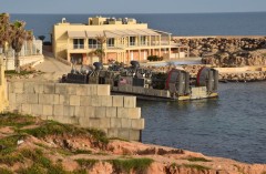 Footage circulating online showed two apparent U.S. Navy transport craft maneuvering off a beach in Janzour, east of Tripoli, sending up plumes of spray as American forces were ferried from the shore.