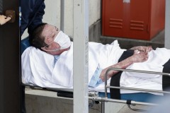 Japanese television footage Wednesday showed Aoba, his face scarred and eyebrows lost apparently from the fire, strapped to a stretcher as he was carried into a police station.